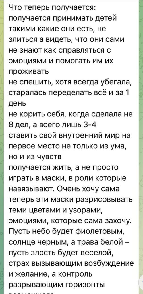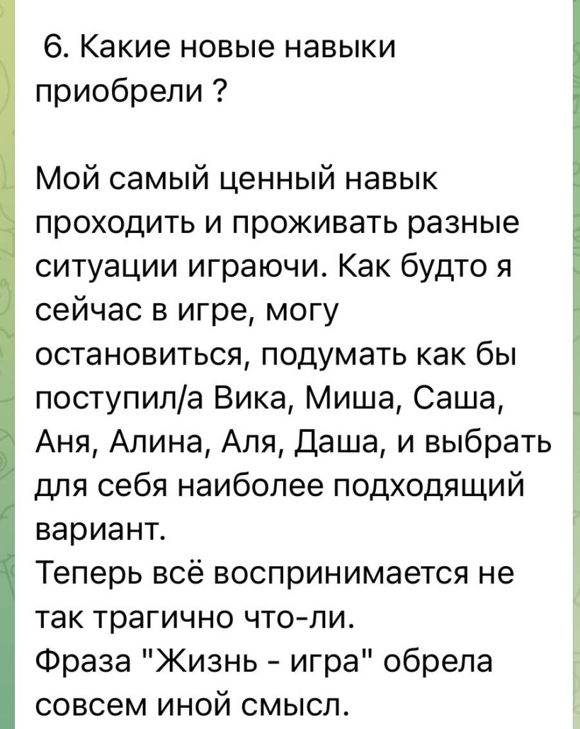 5.3. Представьте, что через год вы — опытный театротерапевт. Какие три слова описали бы ваше ощущение успеха?